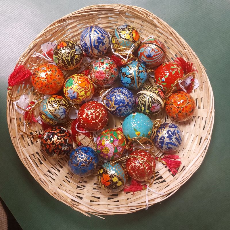 Deze kerstballen uit India, gemaakt van papier-maché, zijn leuk voor in de boom, voor aan een kersttak of om een kerstcadeau extra feestelijk mee te versieren. Naast deze kleurrijke ballen, hebben we nog veel meer kersthangers in alle vormen, maten en kleuren ingekocht.