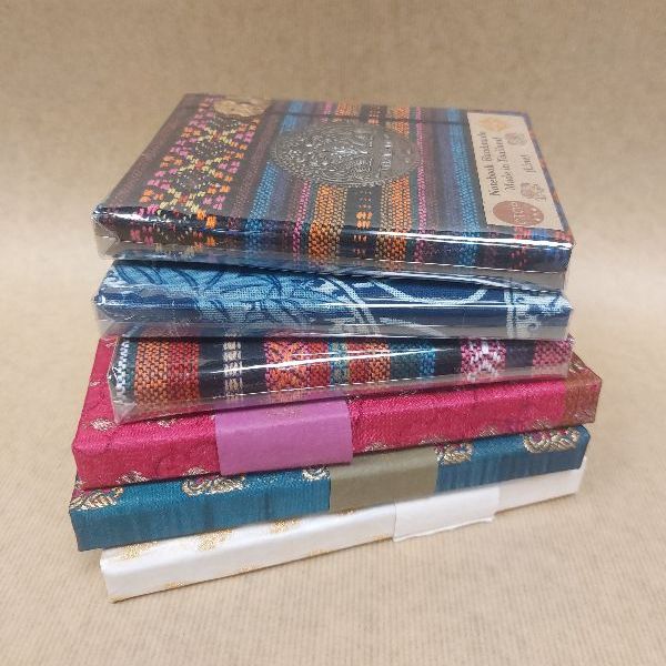 Hét perfecte cadeau voor iedereen die graag schrijft of tekent. De grote boekjes komen uit India en zijn gemaakt van sari’s die gedragen zijn tijdens feestelijke bijeenkomsten. De kleine boekjes zijn gemaakt in Thailand. Beide ongelinieerd.